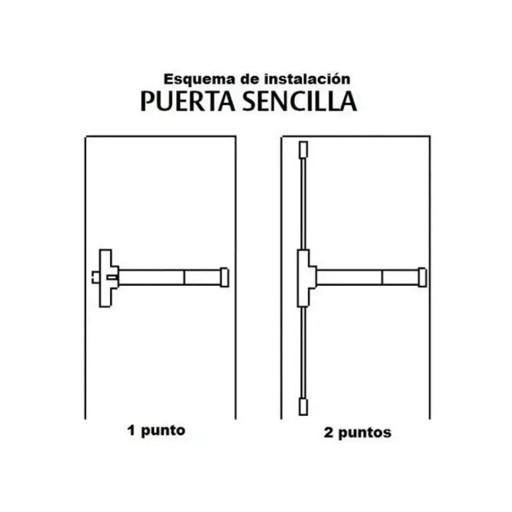 - Función Antipánico: La barra vertical de empuje permite una apertura instantánea de la puerta desde el interior con un simple movimiento de presión, facilitando la evacuación en situaciones de pánico o emergencia. No requiere girar manijas ni realizar movimientos complejos.